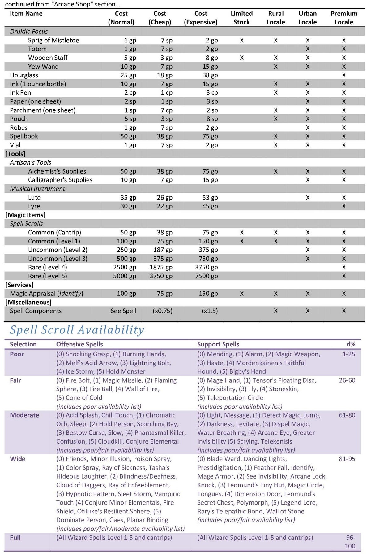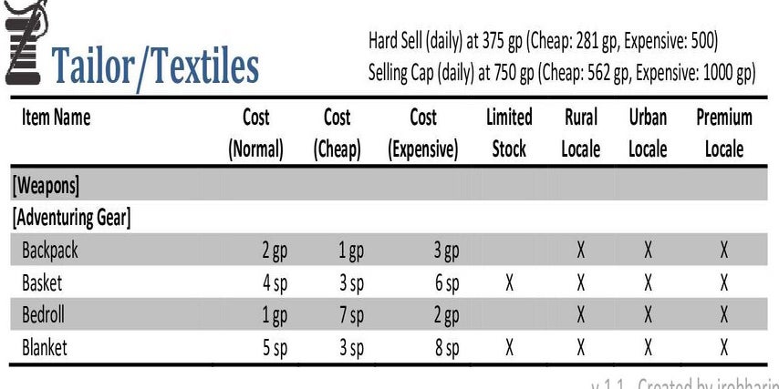 If the DM states to view the Thieves Guild.com version click on the button to be taken and change the cost multiplier according to the DM. These versions have more than the current version you are use too so take your time to get familiar and ask questions!